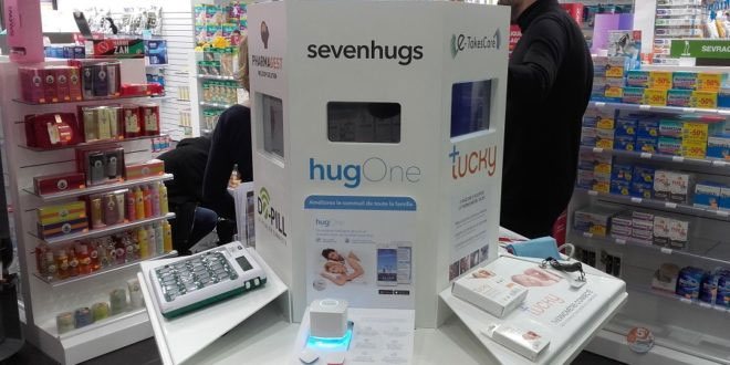 Gratuite et libre d’accès, cette borne est installée au cœur de la pharmacie. Cela permet aux patients et aux clients d’essayer librement toute une panoplie d’appareils : le thermomètre connecté pour enfants Tucky de e-TakesCare, l’oxymètre de pouls et le tensiomètre de iHealth, le carnet de santé connecté de Umanlife, le pilulier DO-Pill de Pharmagest, le moniteur de sommeil HugOne de Sevenhugs, et même un analyseur de stress créé par Codesna. Ils sont tous connectés et innovants d’une manière ou d’une autre.